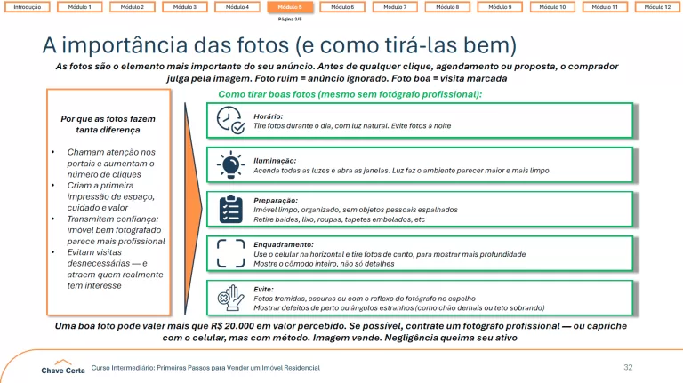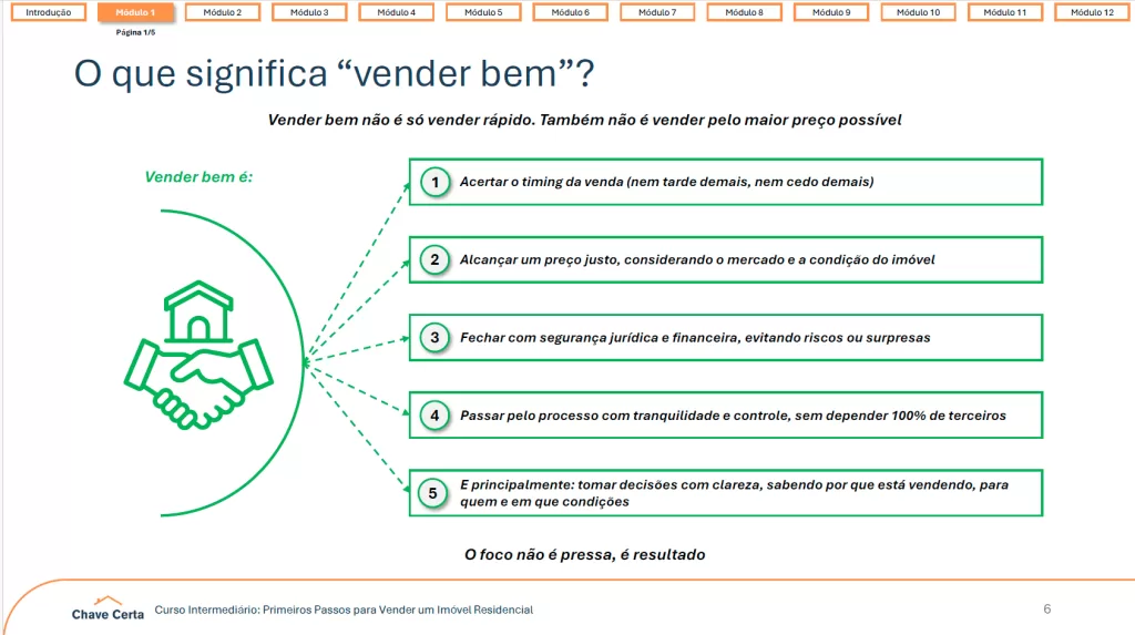 Mesmo quem nunca vendeu um imóvel antes vai sair deste curso com um plano claro para estruturar e conduzir sua venda de ponta a ponta, evitando os erros mais caros.